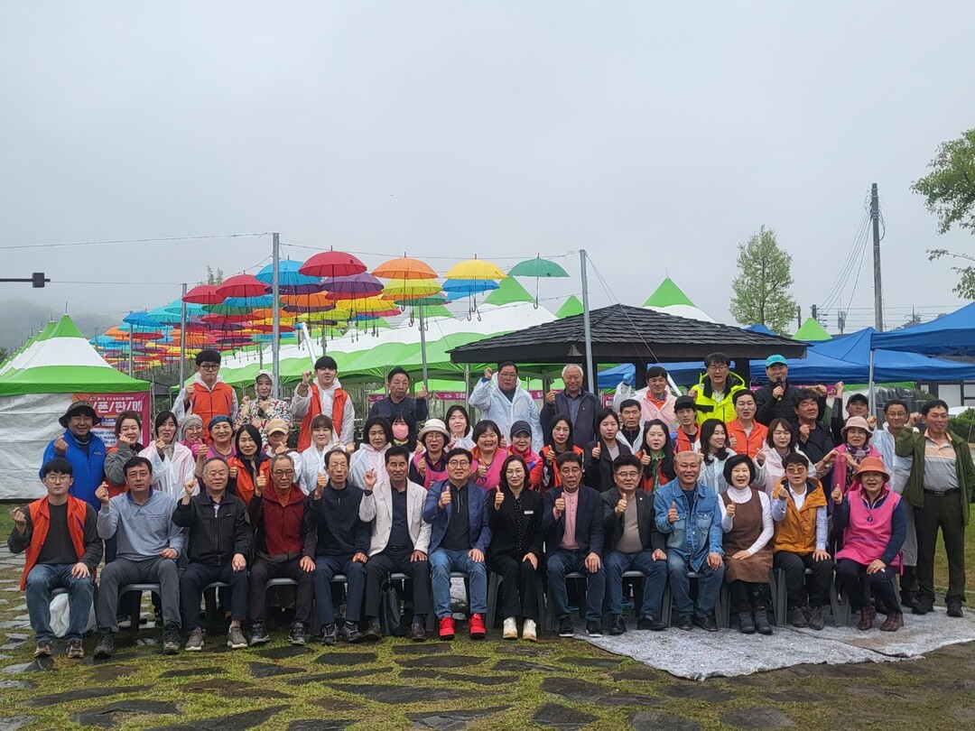 | ▲ 화순군 도곡면민과 직원들이 '제1회 도곡 농특산물 대축제'에서 기념촬영을 하고 있다. [화순군 제공] |