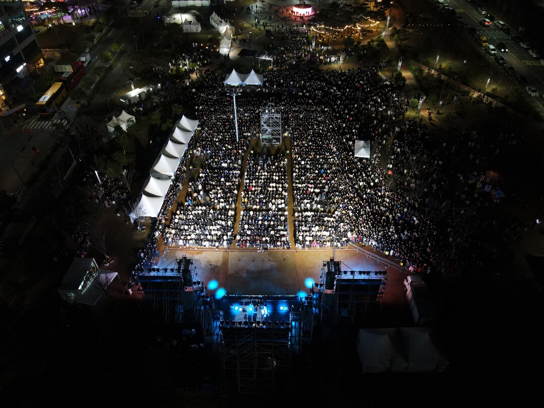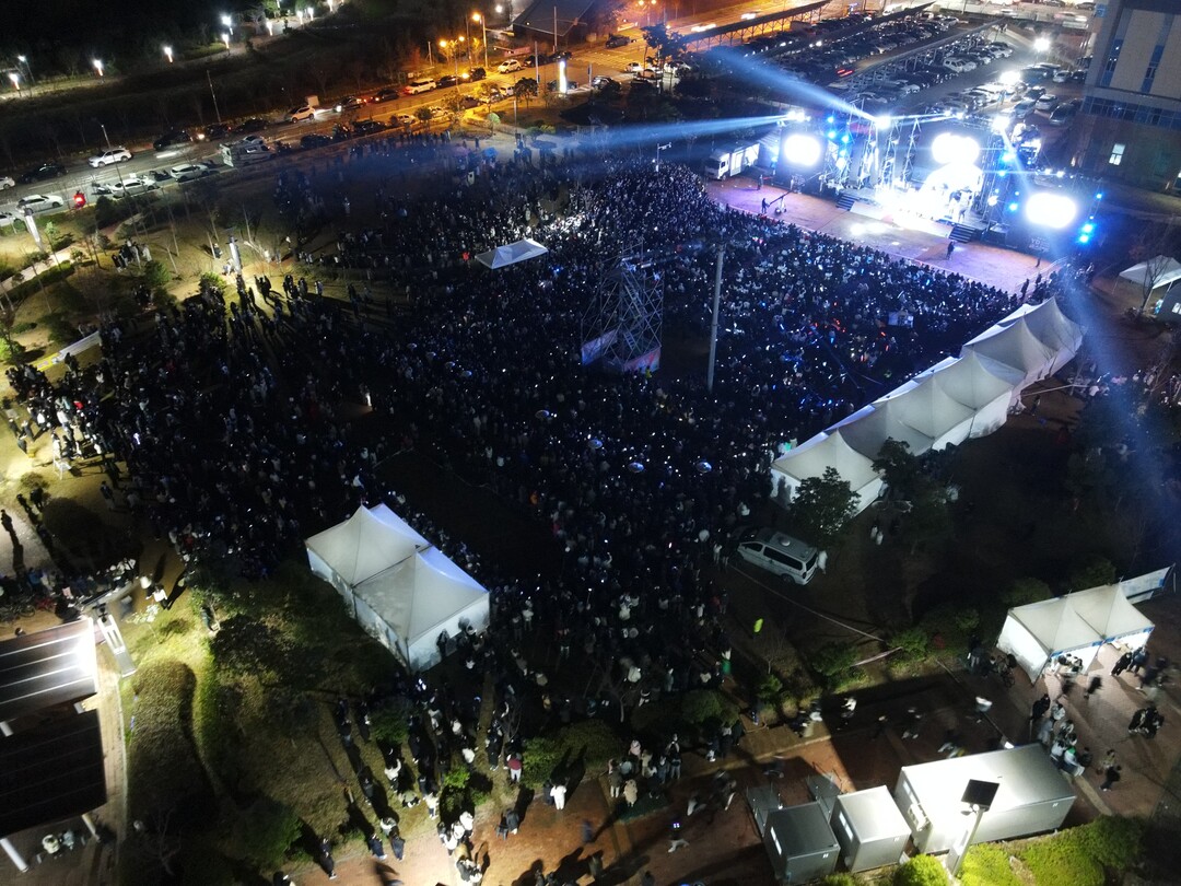 | ▲ 18일 밤 무안 YD페스티벌 초대가수 '윤도현 YB밴드'와 우디·DK를 보기 위해 남악에 거주하는 무안군민 등 수많은 인파가 운집했다. [무안군 제공] |