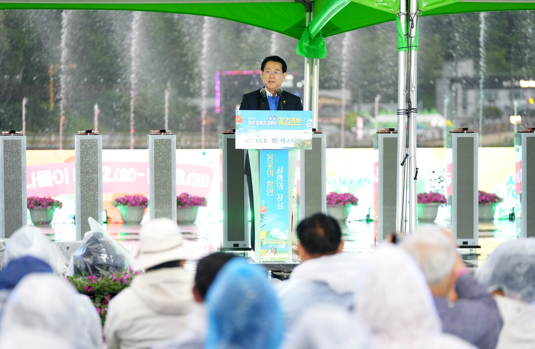 | ▲ 김영록 전라남도지사가 9일 장성 황룡강지방정원에서 열린 '2025 남도 K-가든 페스티벌 개막식'에 참석, 인사말을 하고 있다. [전남도 제공] |