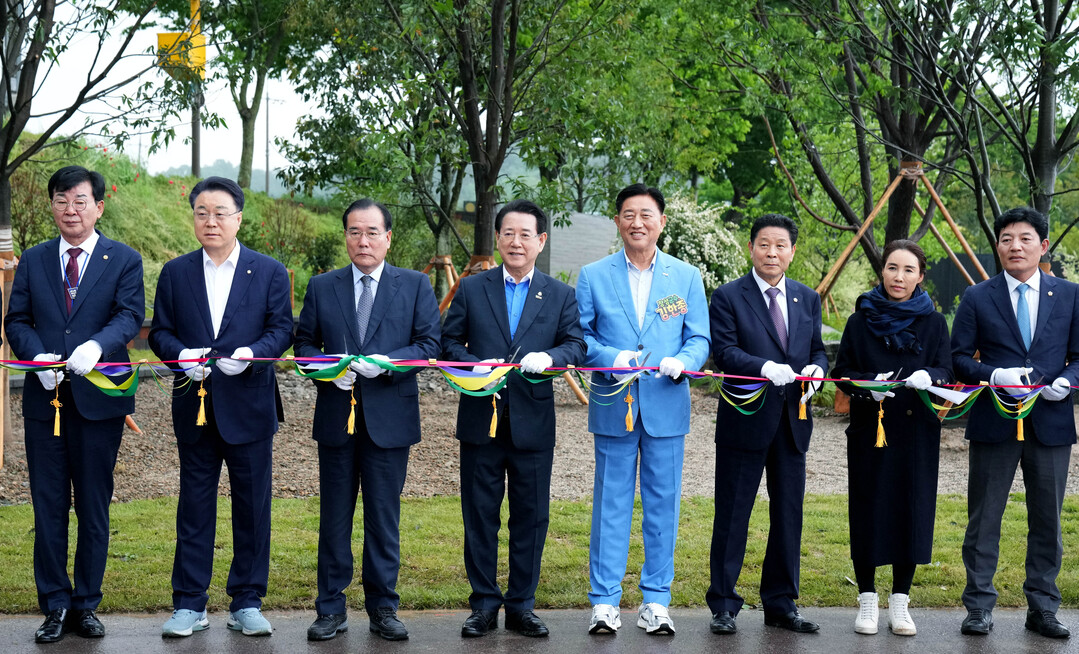 | ▲ 김영록 전라남도지사가 9일 장성 황룡강지방정원에서 열린 '2025 남도 K-가든 페스티벌 개막식'에 참석, 주요내빈들과 테이프커팅을 하고 있다. [전남도 제공] |