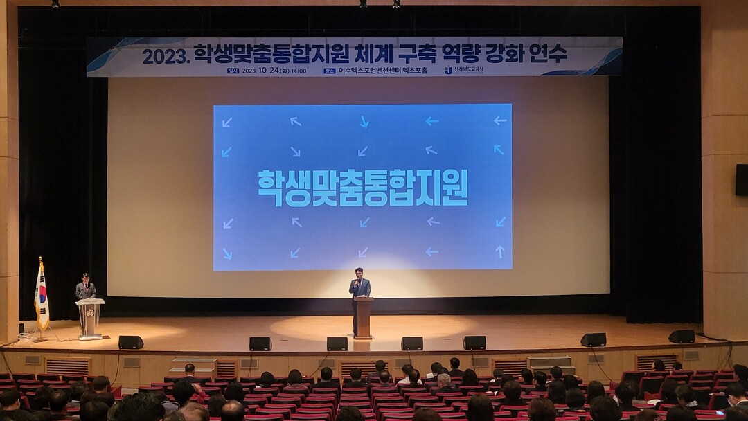 전라남도교육청이 24일 여수엑스포컨벤션센터에서 학생맞춤통합지원 사업 역량 강화 연수를 열고, 학생 중심의 효과적 지원 방안을 모색했다.