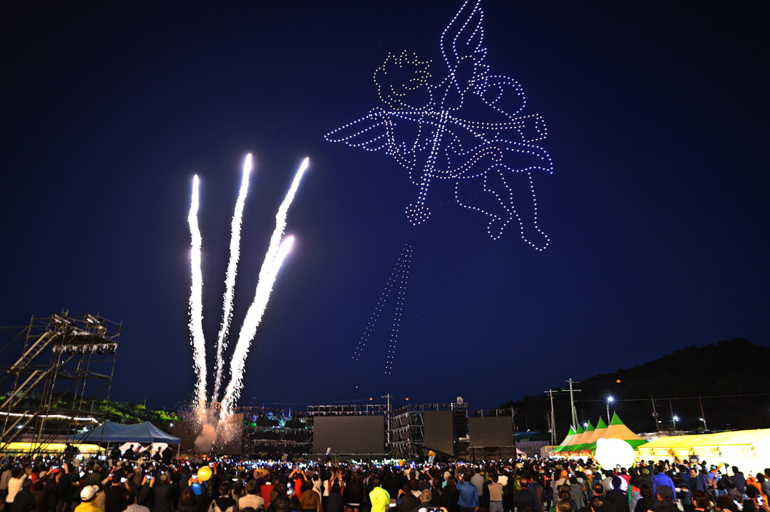 이날 공영민 군수 개막선언으로 시작된 축제는 ‘유자향 별밤 아트쇼’ 1000대 드론으로 지역에서 쉽게 접하지 못하는 가을밤 축제장의 환상적인 낭만을 선사했다.