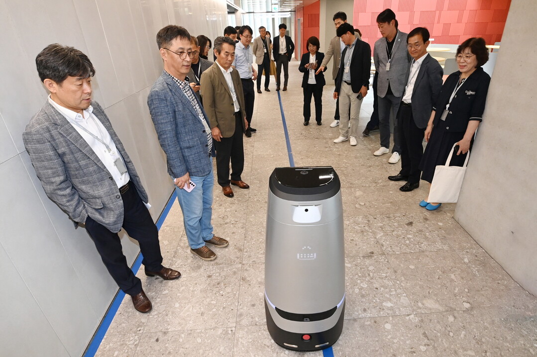 | ▲ 지난 5일 네이버 1784를 방문한 수원시 간부 공무원들이 로봇 활용 기술을 견학하고 있다. [수원시 제공] |