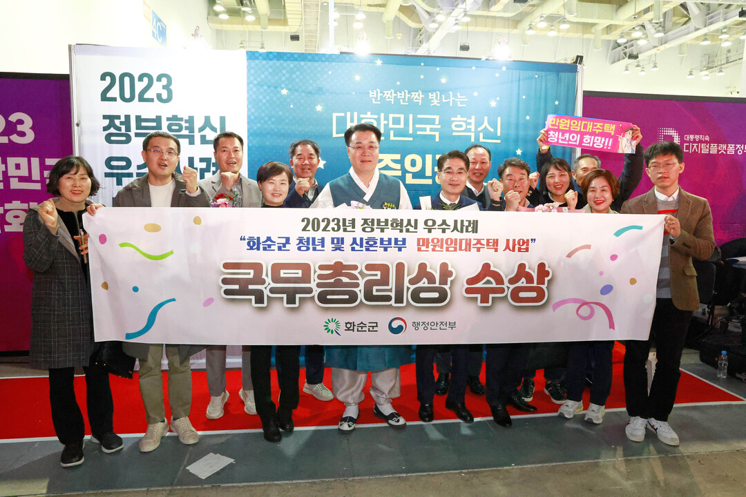 전남 화순군이 24일 부산 벡스코에서 열린 대한민국 정부혁신 우수사례 경진대회 시상식에서 화순군의 ‘청년 및 신혼부부 만원 임대주택사업’이 국무총리상을 받았다.