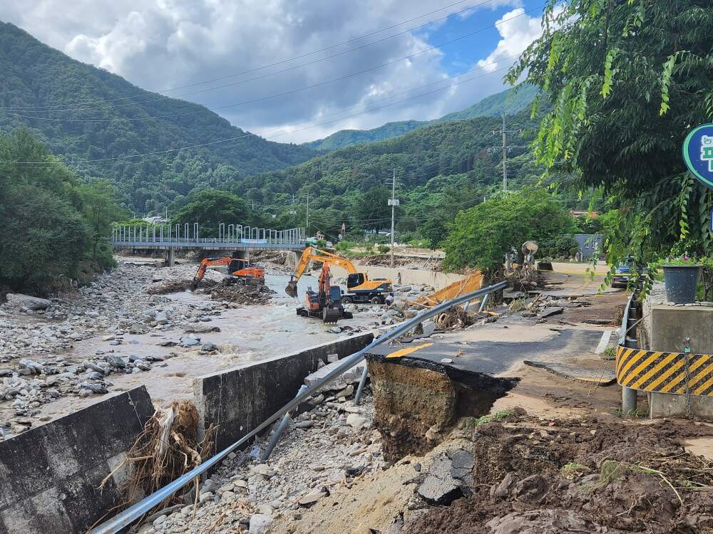 ▲가평 승안2리 마을회관 일대 긴급복구 작업 [가평군 제공]