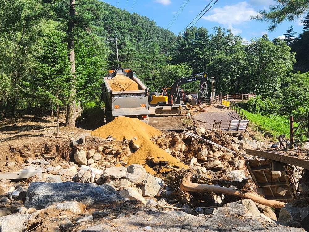 ▲가평 승안2리 도립공원 긴급복구 작업 [가평군 제공]
