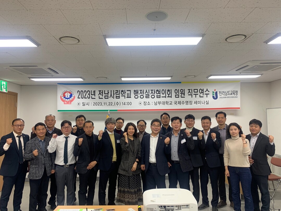 전남사립학교행정실장협의회가 지난 22일 전남 사립학교 '제7회 임원 직무연수'를 남부대 국제수영장에서 개최했다.