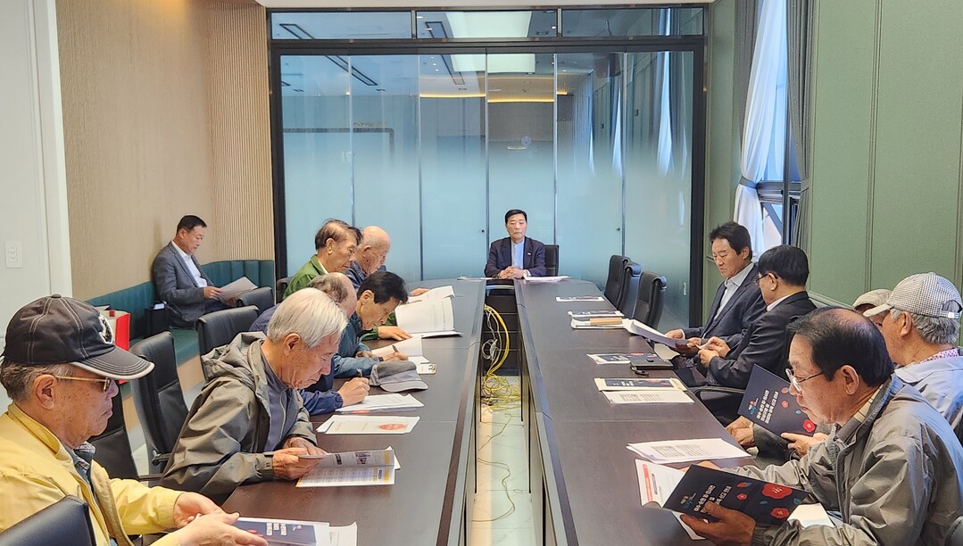 | ▲ 성재수 여순사건 보성유족회장과 회원들이 지난 4월28일 총회를 열고 있다. [보성유족회 제공] |