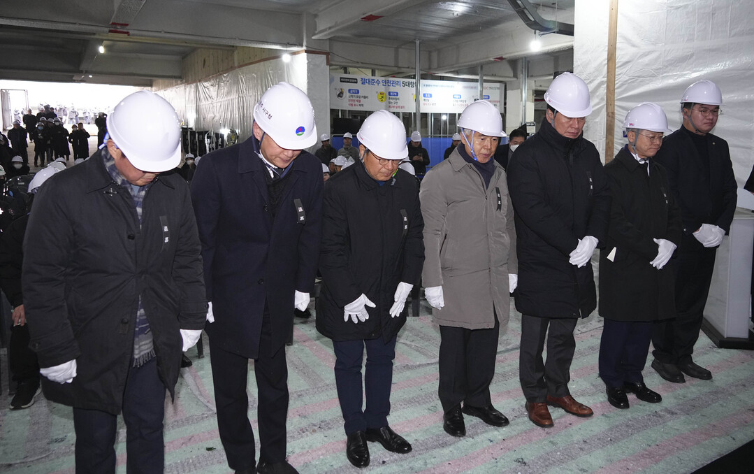 | ▲ 강기정 광주광역시장이 11일 오후 현대산업개발 아파트 신축공사 붕괴사고 3주기 추모식에 참석해 묵념을 하고 있다. [광주광역시 제공] |