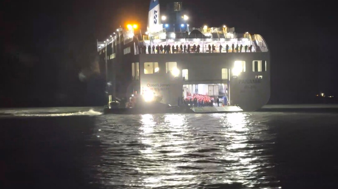 | ▲ 19일 밤 8시17분쯤 전남 신안군 장산도 남방 족도 인근해상에서 여객선 퀸제누비아2호가 좌초돼 해경이 승객 구조에 나서고 있다. [목포해경 제공] |