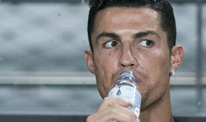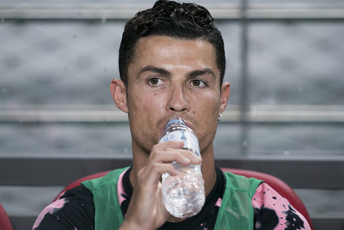 26일 오후 서울 마포구 서울월드컵경기장에서 열린 팀 K리그와 유벤투스FC의 친선경기에서 크리스티아누 호날두가 물을 마시고 있다.