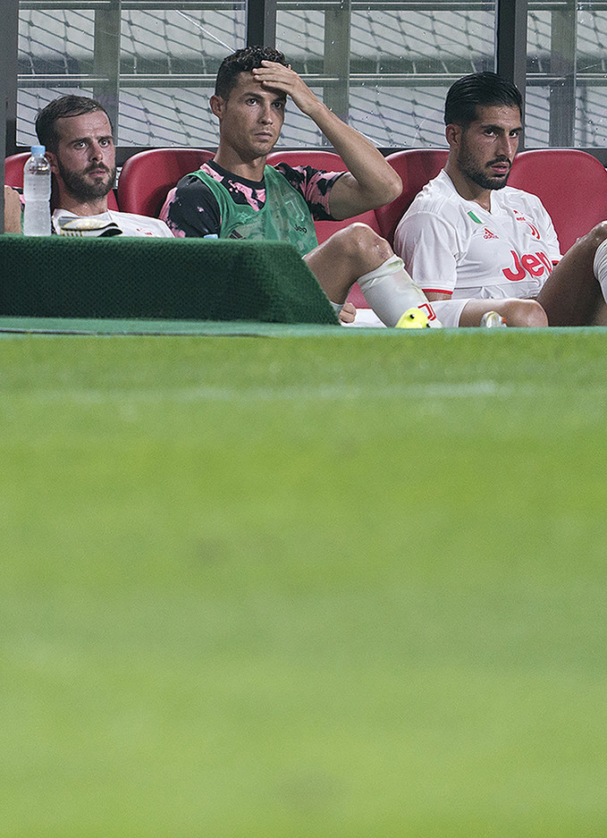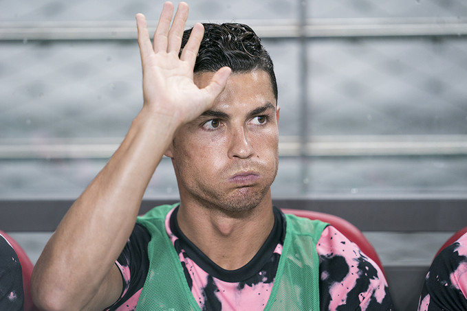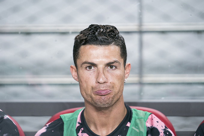26일 오후 서울 마포구 서울월드컵경기장에서 열린 팀 K리그와 유벤투스FC의 친선경기에서 크리스티아누 호날두가 벤치에 앉아 있다.