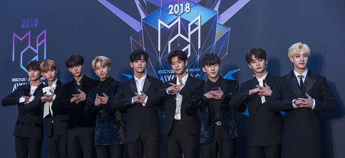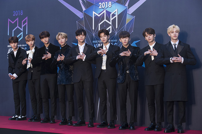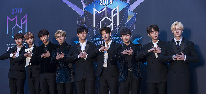그룹 스트레이키즈가 6일 오후 인천 남동구 남동체육관에서 열린 2018 MGA(MBC플러스 X 지니뮤직 어워드) 레드카펫에서 포즈를 취하고 있다.