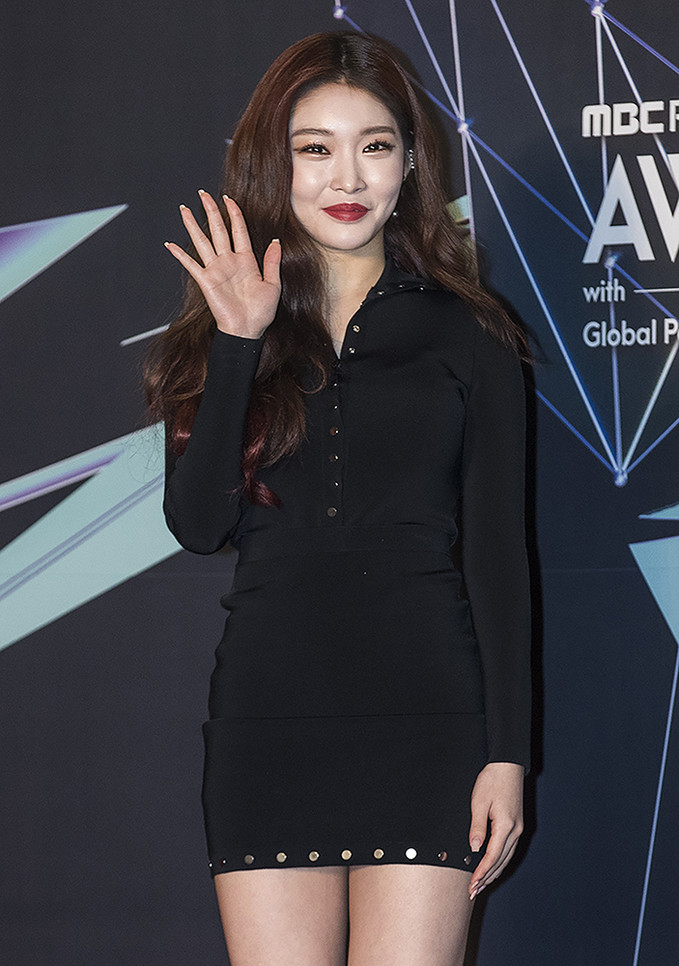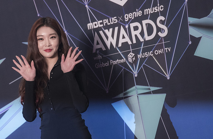 가수 청하가 6일 오후 인천 남동구 남동체육관에서 열린 2018 MGA(MBC플러스 X 지니뮤직 어워드) 레드카펫에서 포즈를 취하고 있다.