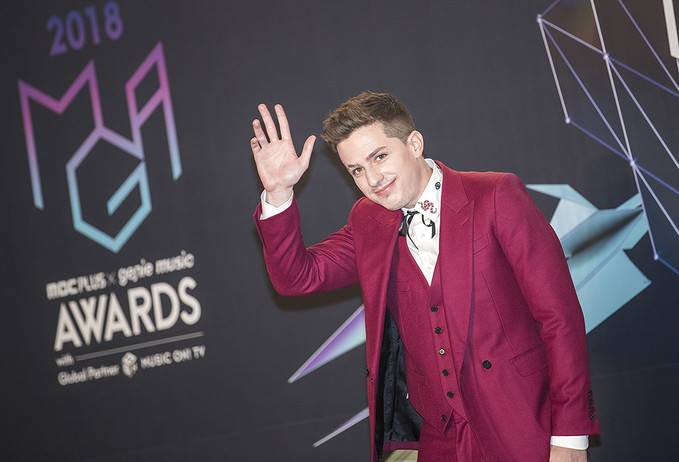 가수 찰리 푸스가 6일 오후 인천 남동구 남동체육관에서 열린 2018 MGA(MBC플러스 X 지니뮤직 어워드) 레드카펫에서 포즈를 취하고 있다.
