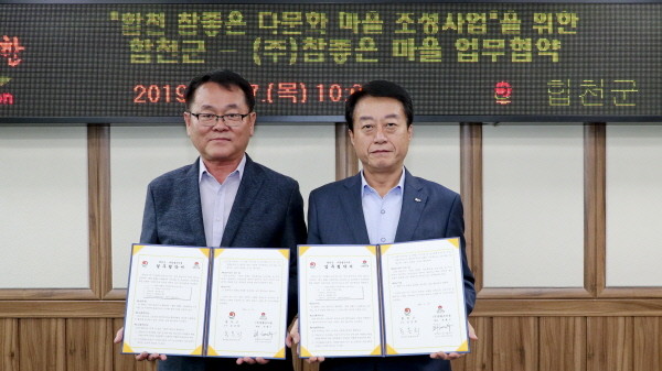 합천군과 ㈜참좋은마을은 27일 합천군청 2층 소회의실에서 문준희 군수, 최혜수 대표를 비롯한 관계자 등 10명이 참석한 가운데 ‘합천 참좋은 다문화마을 조성사업을 위한 업무협약’을 체결했다.