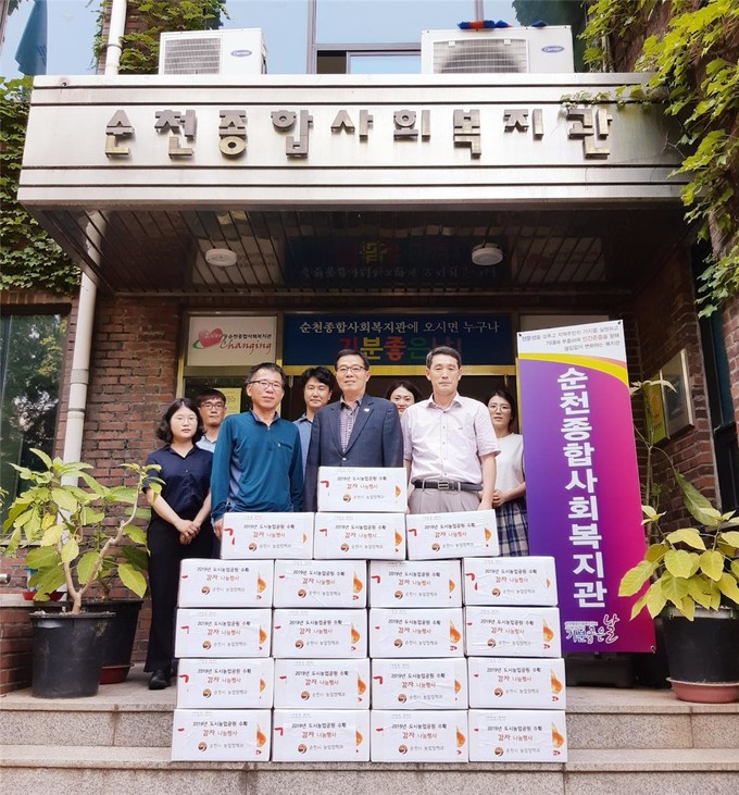 순천시는 지난 25일 신대도시농업공원에서 직접 재배한 감자 250kg을 수확해 순천종합사회복지관에 전달했다.