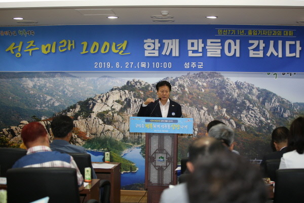 이날 간담회에서 “취임과 함께 성주 비전과 군정목표 등을 제시하고 소통과 화합으로 변화를 추진했다”며“현장에 답이 있다‘는 신념으로 취임 첫날부터 민생 현장방문으로 업무를 시작해 현장 중심의 행정에 중점을 두었고, 사드로 갈라진 지역민심을 보듬기 위해 계속 노력하고 있다. 군민이 군수다라는 슬로건을 걸고 군수실을 1층으로 이전, 항상 문을 활짝 열어 놓아 낮은 자세로 소통행정구현에 힘썼다”고 강조했다.