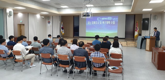 이번 교육은 여름철 자연재난에 대비해 신속한 피해 조사와 복구를 위한 직원들의 업무능력 배양을 위해 자연재난 피해 조사, 복구계획수립방법, 재난관리시스템 피해입력요령과 함께 재해 대장을 직접 전산 입력하고 작성해봄으로써 피해발생시 바로 적용할 수 있는 실무중심 교육으로 진행됐다.