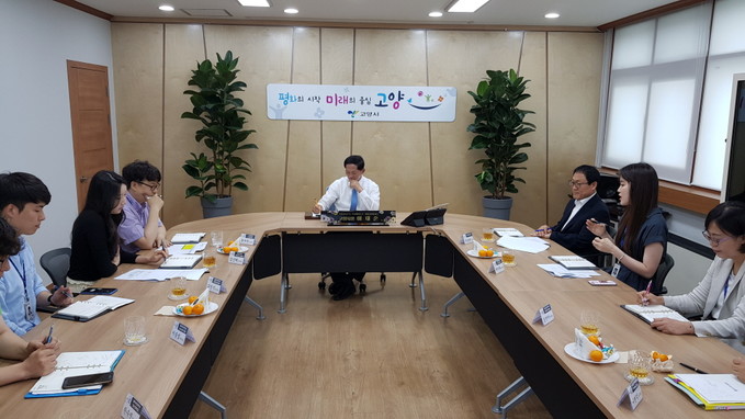 고양시는 기존 일자리에 대한 고정관념에서 벗어나 새롭게 다양한 일자리를 넓히기 위한 방안으로 각 부서별 일자리관련 담당자와 소통하는 일자리 추진전략 회의를 지난 27일 오전 9시부터 고양시청 열린회의실에서 개최했다. ,계층별 일자리 ,미래 일자리 ,지원체계 등 3개 분야로 분류해 총 14명의 담당자가 참여한 이날 회의는 다양한 정책을 직접 고민하고 실현시키는 담당자와 고양시장의 격이 없는 대화와 소통의 방식으로 이루어졌다.