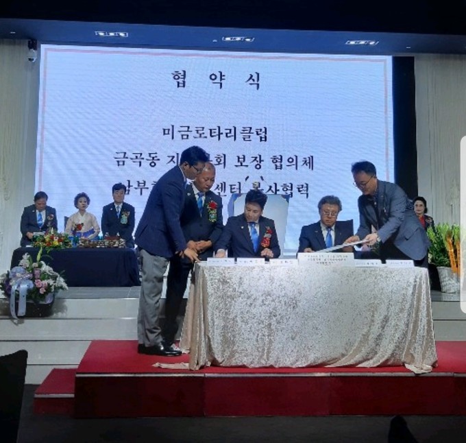 남양주시 금곡동 지역사회보장협의체는 지난 27일 지역사회 복지공동체 실현을 위해 국제로타리 3600지구 미금로타리 클럽, 남부희망케어센터와 봉사협력 협약을 체결했다.