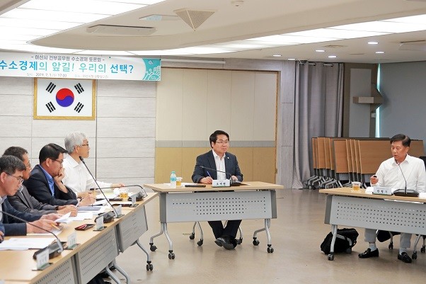 아산시는 지난 1일 시청 상황실에서 오세현 아산시장 주재로 간부공무원20여명이 참석한 가운데 ‘수소경제의 앞길 우리의 선택’을 주제로 수소경제 토론회를 가졌다.