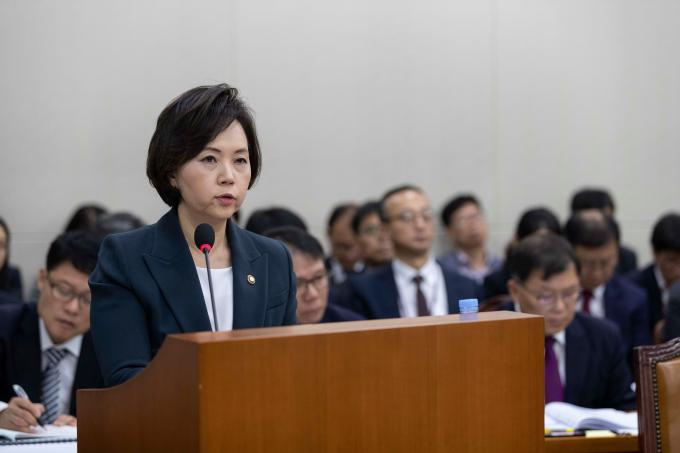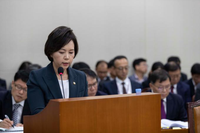 이의경 식품의약품안전처장이 7일 서울 여의도 국회에서 열린 '국회 보건복지위원회의의 식품의약품안전처 등에 대한 국정감사'에 출석해 업무보고를 하고 있다.