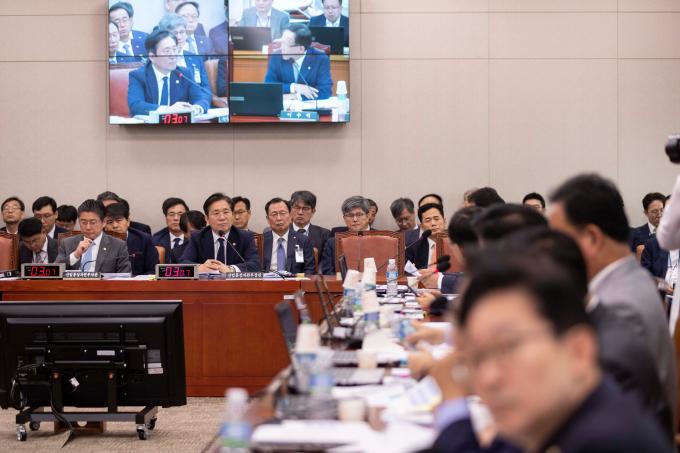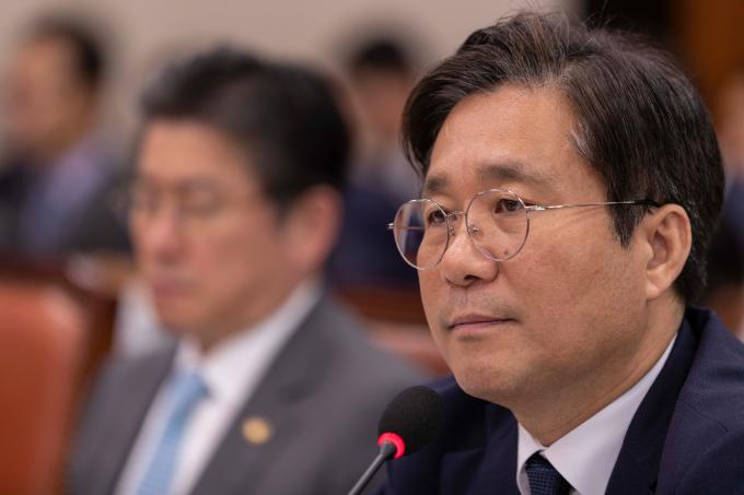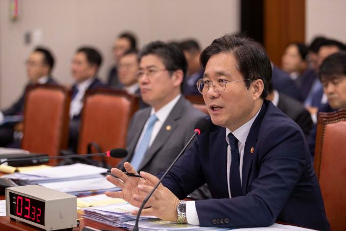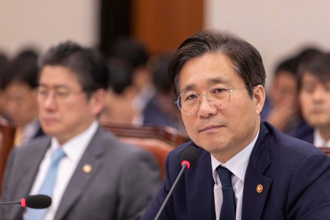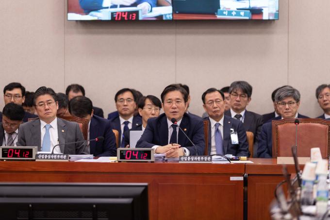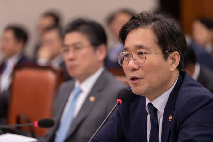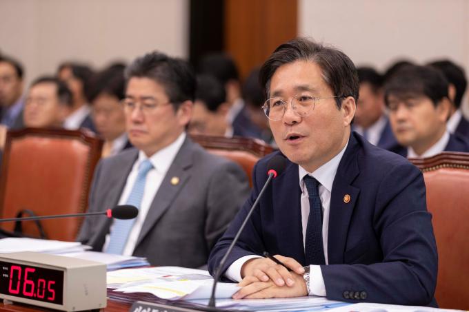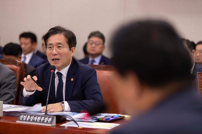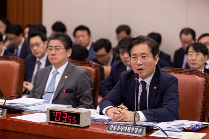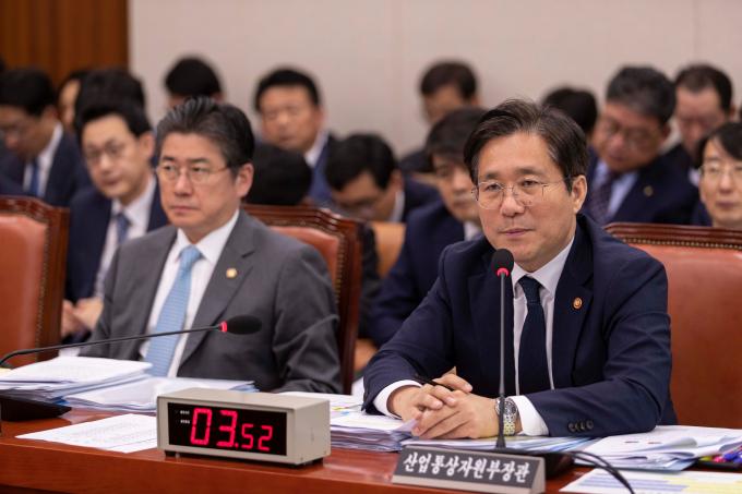 성윤모 산업통상자원부 장관이 7일 서울 여의도 국회에서 열린 산업통상자원중소벤처기업위원회 국정감사에 출석해 의원 질의에 답하고 있다.
