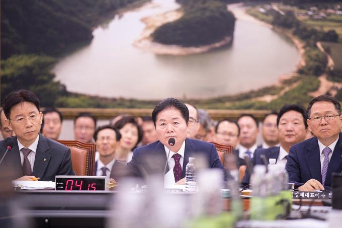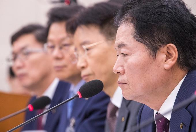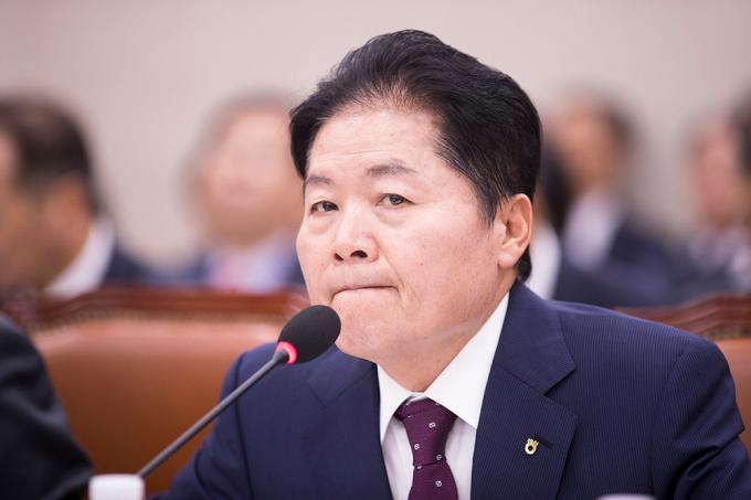 이대훈 농협은행장이 8일 오전 서울 영등포구 국회에서 열린 농림축산식품해양수산위원회 농협중앙회 국정감사에 참석하고 있다.