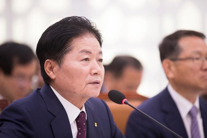 김병원 농협중앙회 회장이 8일 오전 서울 영등포구 국회의사당에서 열린 국회 농림축산식품해양수산위원회 농협중앙회 국정감사에서 질의에 답하고 있다.