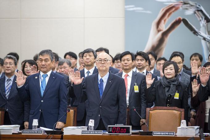 이병권 한국과학기술연구원장이 11일 오전 서울 영등포구 국회의사당에서 열린 과학기술정보방송통신위원회 국정감사에서 증인선서를 하고 있다.