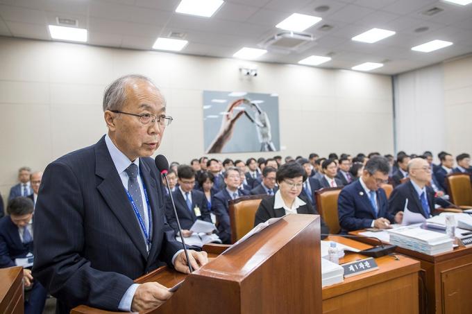 원광연 국가과학기술연구회 이사장이 11일 오전 서울 영등포구 국회의사당에서 열린 과학기술정보방송통신위원회 국정감사에서 업무보고를 하고 있다.