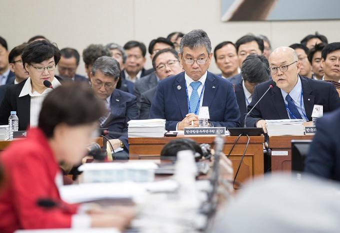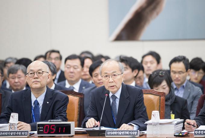 원광연 국가과학기술연구회 이사장이 11일 오전 서울 영등포구 국회의사당에서 열린 과학기술정보방송통신위원회 국정감사에서 질의에 답하고 있다.