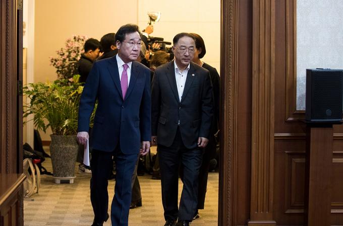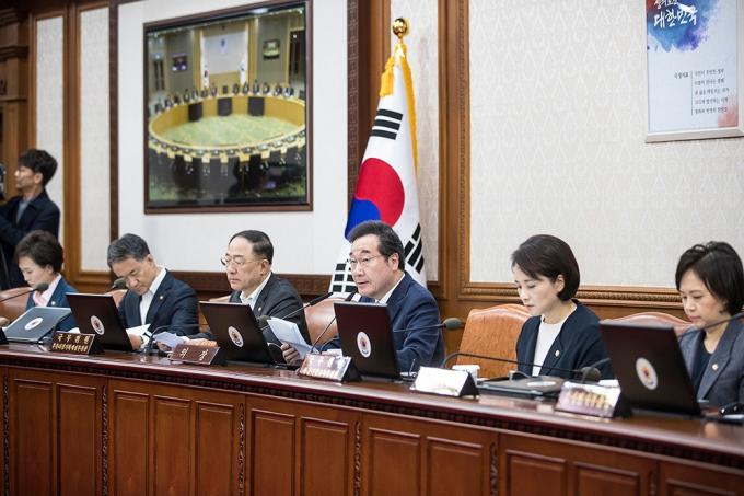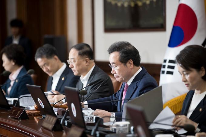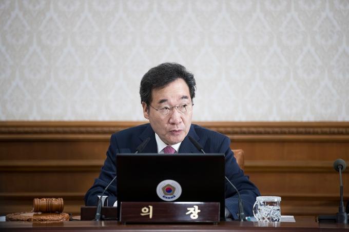 이낙연 국무총리가 15일 오전 서울 종로구 정부서울청사에서 열린 국무회의에 참석하고 있다. 정부는 이날 국무회의에서 '검찰청 사무기구에 관한 규정' 개정안을 의결한다.