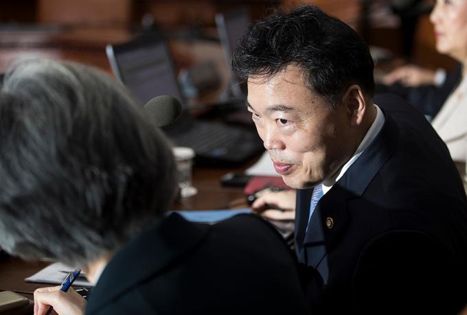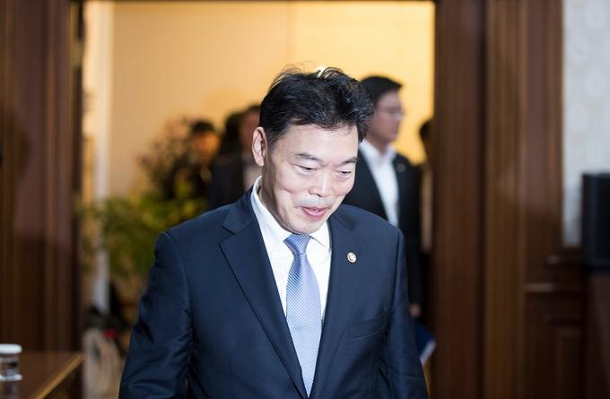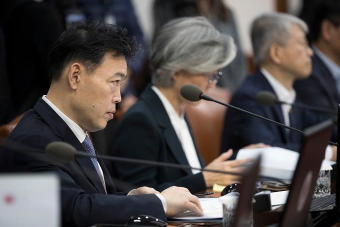 김오수 법무부 차관이 15일 오전 서울 종로구 정부서울청사에서 열린 국무회의에 참석하고 있다. 정부는 이날 국무회의에서 '검찰청 사무기구에 관한 규정' 개정안을 의결한다.