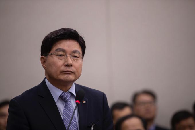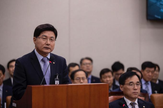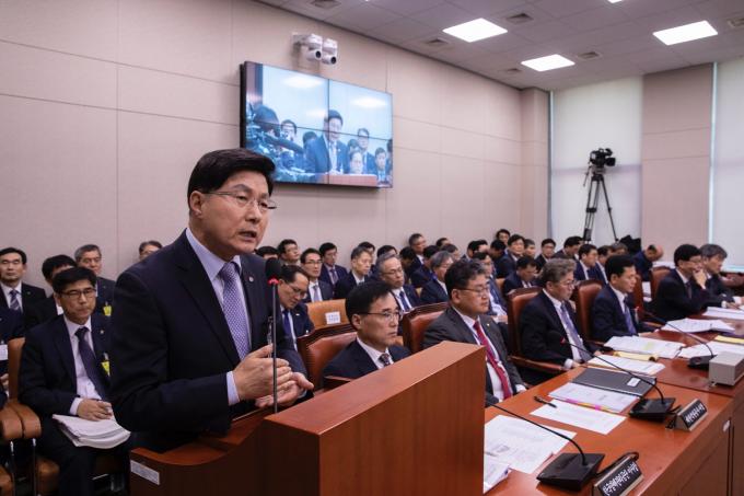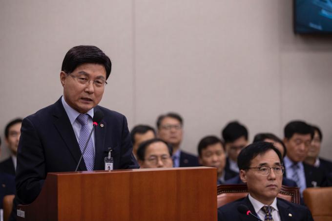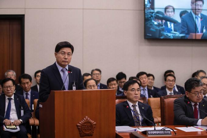 김형근 한국가스안전공사 사장이 15일 오후 서울 여의도 국회에서 열린 산업통상자원중소벤처기업위원회 국정감사(한국가스공사, 한국석유공사, 한국광물자원공사, 대한석탄공사, 한국광해관리공단, 강원랜드, 한국석유관리원, 한국가스기술공사, 한국에너지공단, 한국에너지재단, 한국지역난방공사, 한국전기안전공사, 한국가스안전공사)에 출석해 의원 질의에 답하고 있다.
