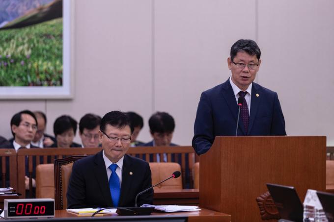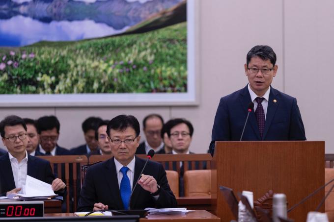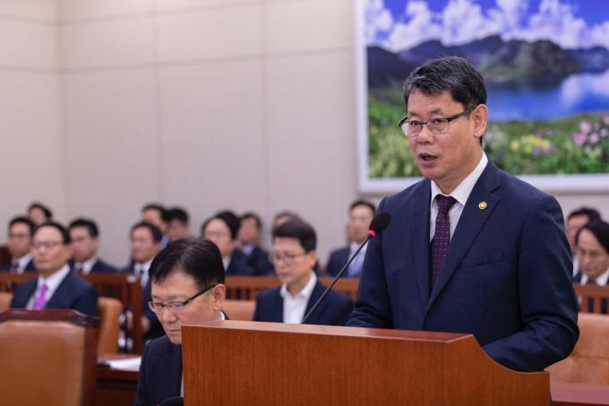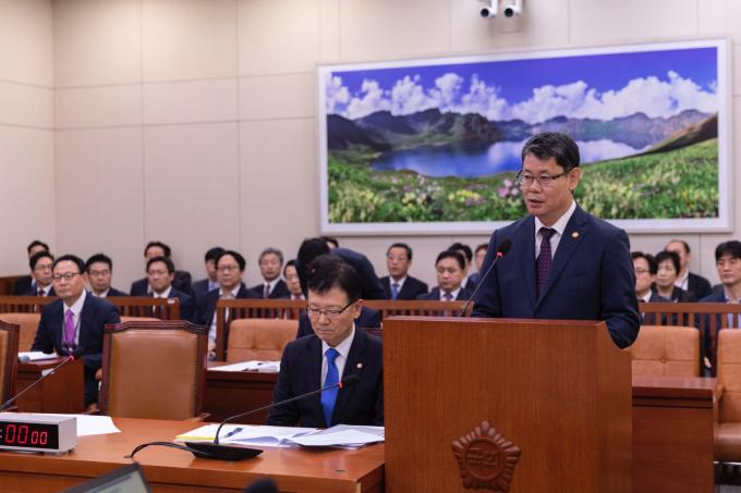 김연철 통일부 장관이 17일 오전 서울 여의도 국회에서 열린 외교통일위원회의 통일부 국정감사에 출석해 업무보고를 하고 있다.