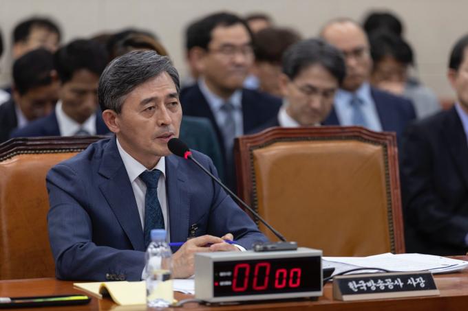 양승동 한국방송공사 사장이 17일 오후 서울 여의도 국회에서 열린 과학기술정보방송통신위원회의 한국방송공사(KBS)에 대한 국정감사에 출석해 의원 질의를 듣고 있다.