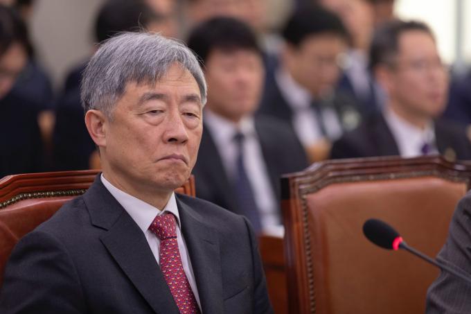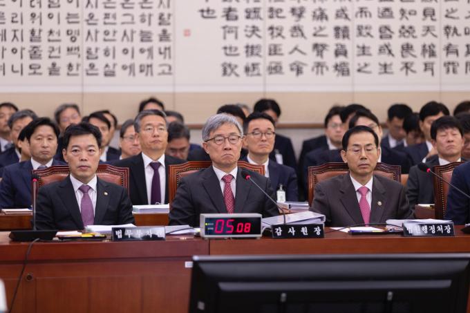 21일 오전 서울 여의도 국회에서 열린 법제사법위원회 종합국정감사에서 최재형 감사원장이 굳은 표정으로 의원 질의를 듣고 있다.