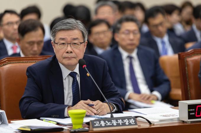 이재갑 고용노동부 장관이 21일 서울 여의도 국회에서 열린 환경노동위원회 종합국정감사에 출석해 의원 질의를 듣고 있다.