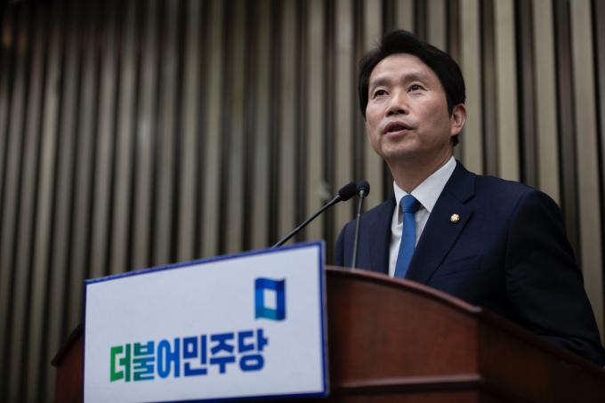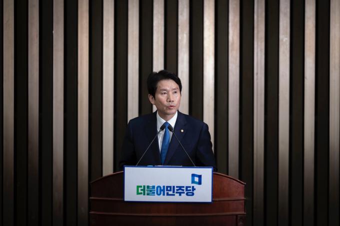 더불어민주당 이인영 원내대표가 25일 오후 서울 여의도 국회에서 열린 의원총회에 참석해 발언하고 있다.