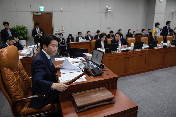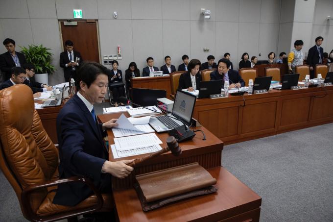 이인영 위원장이 25일 오후 서울 여의도 국회에서 열린 운영위원회 국정감사(국회사무처, 국회도서관, 국회예산정책처, 국회입법조사처, 국회미래연구원)를 주재하고 있다.