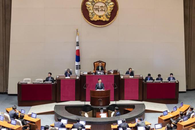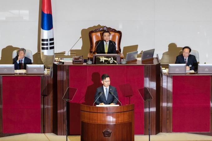 김현수 농림축산식품부 장관이 28일 오전 서울 여의도 국회에서 열린 제371회 국회(정기회) 제7차 본회의에 참석해 신임 국무위원 인사를 하고 있다.