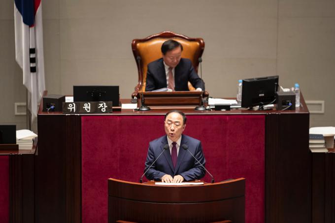 홍남기 경제부총리 겸 기획재정부 장관이 28일 오전 서울 여의도 국회에서 열린 예산결산심의위원회 전체회의에 출석해 발언하고 있다.