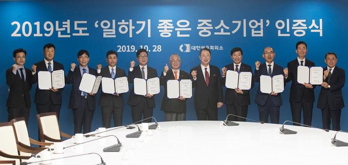 28일 오전 서울 중구 대한상공회의소 챔버라운지에서 '일하기 좋은 중소기업 인증식'이 열리고 있다.