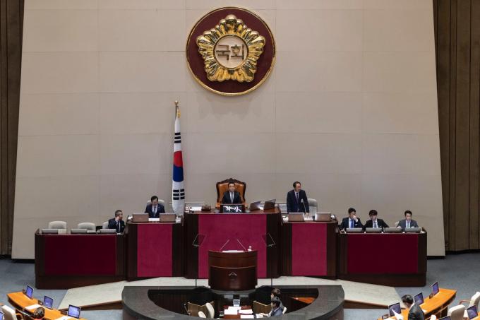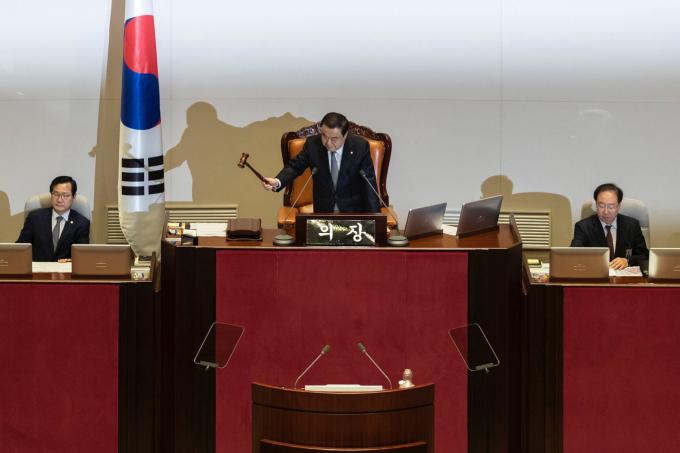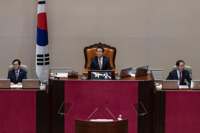 문희상 국회의장이 31일 오후 서울 여의도 국회에서 열린 제371회 국회(정기회) 제10차 본회의를 주재하고 있다.