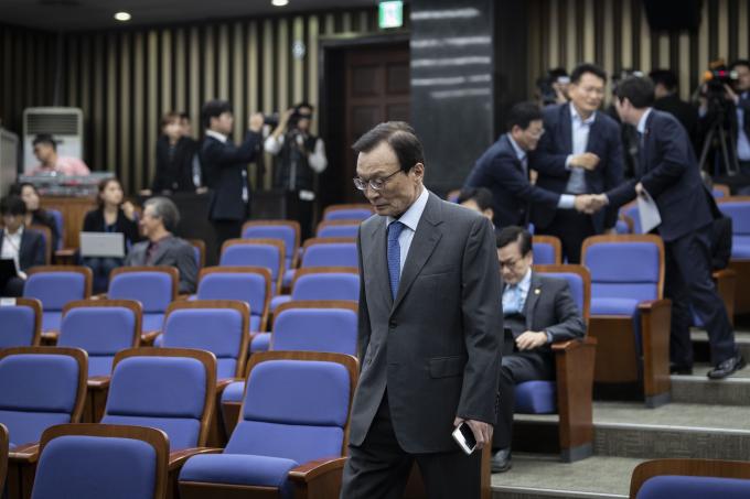 더불어민주당 이해찬 대표가 4일 오후 서울 여의도 국회에서 열린 민주당 의원총회에 참석하고 있다.