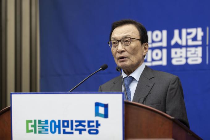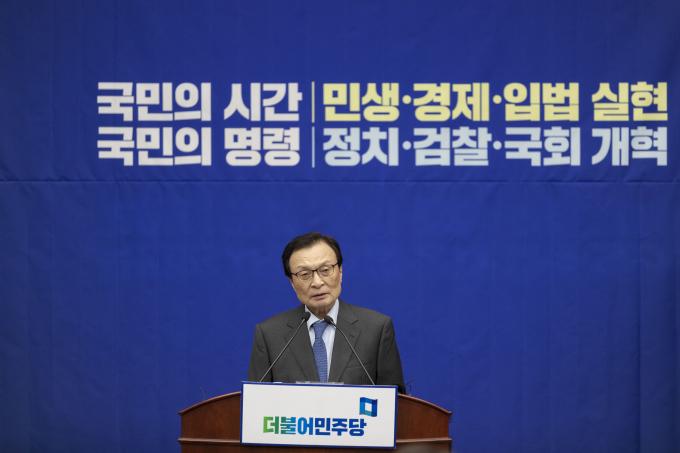더불어민주당 이해찬 대표가 4일 오후 서울 여의도 국회에서 열린 민주당 의원총회에 참석해 발언하고 있다.