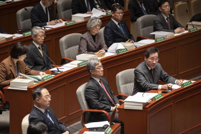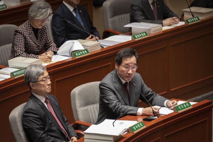 이낙연 국무총리가 7일 오전 서울 여의도 국회에서 열린 예산결산특별위원회 전체회의에 출석해 의원 질의에 답하고 있다.