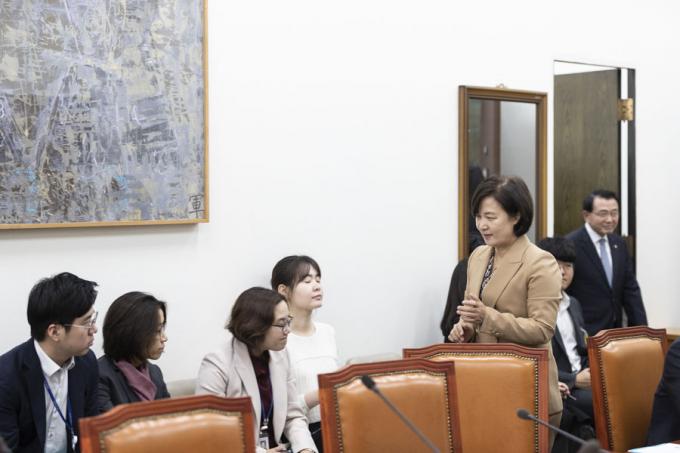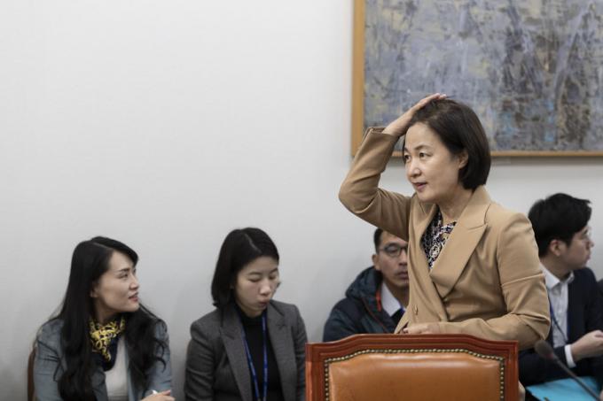 더불어민주당 소속 추미애 외통위 미주소위원장이 12일 오전 서울 여의도 국회에서 열린 외교통일위원회 미주소위회의에 참석하고 있다.
